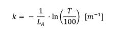 Ispitivanje greške merenja koeficijenta apsorpcije opacimetra - Δk određuje se poređenjem vrednosti koeficijenta apsorpcije koja se očitava sa opacimetra sa vrednošću koju reprodukuje etalonski filter opacitivnosti koja se može izračunati prema formuli: