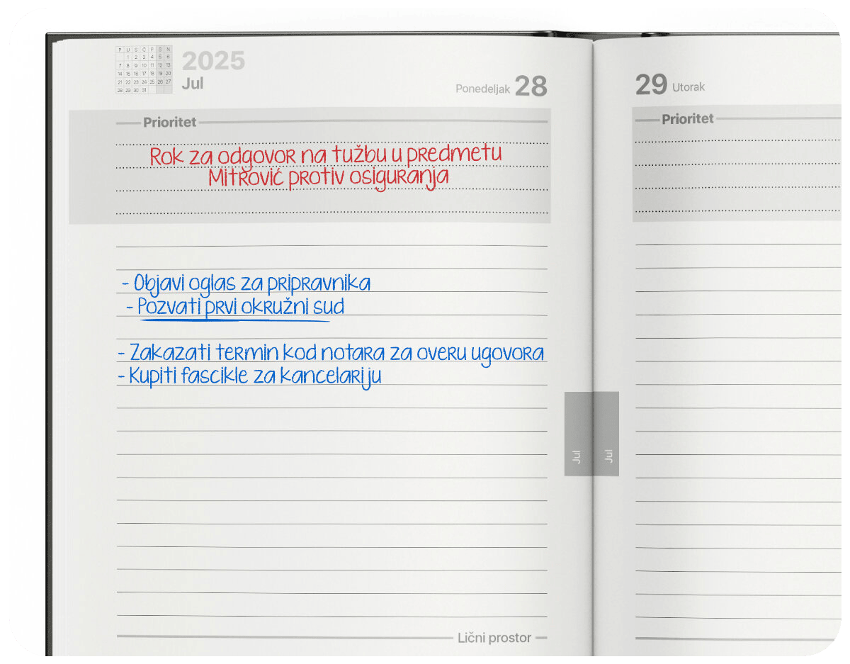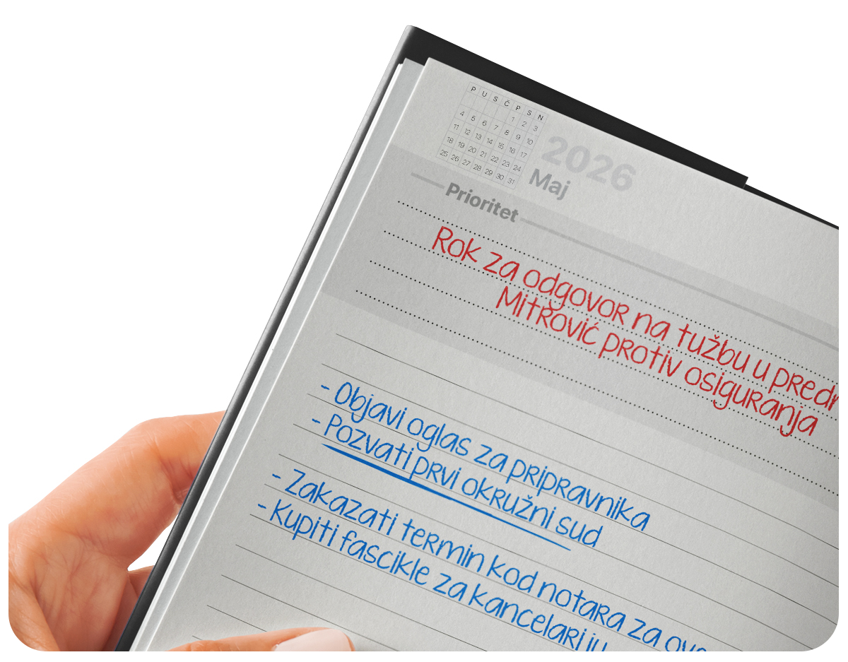 Praktična stranica za evidenciju broja predmeta, važnih rokova i ličnih zapažanja