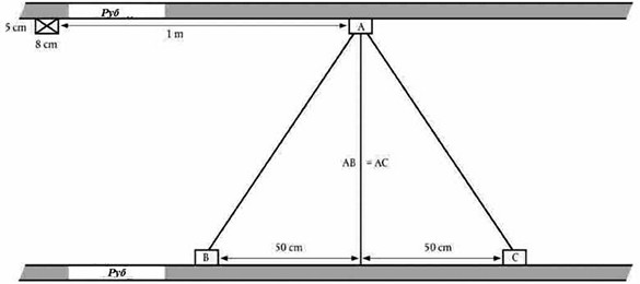 U primeru, kožni materijal (A), tekstilni materijal (B), površina (C) je deo tekstilnog materijala (B) koji se nalazi ispod kožnog materijala (A) koji ga prekriva. Pri izračunavanju ukupne površine materijala koji čine gornjište, ne uzima se u obzir tekstilna površina (C).