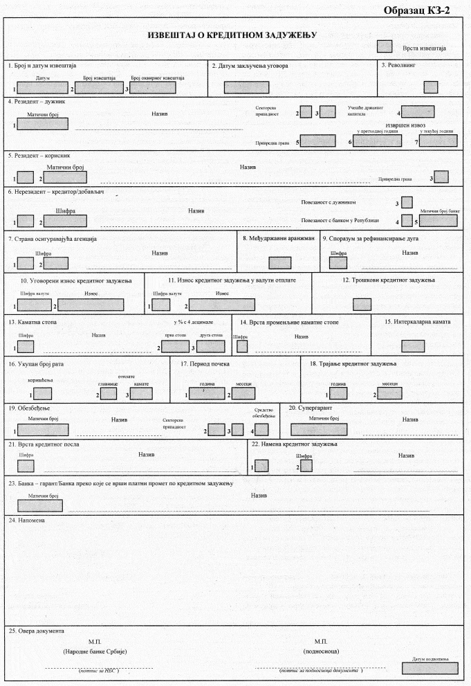 a) izveštaj o kreditnom zaduženju (Obrazac KZ-2), uz koji se dostavlja sledeća dokumentacija: