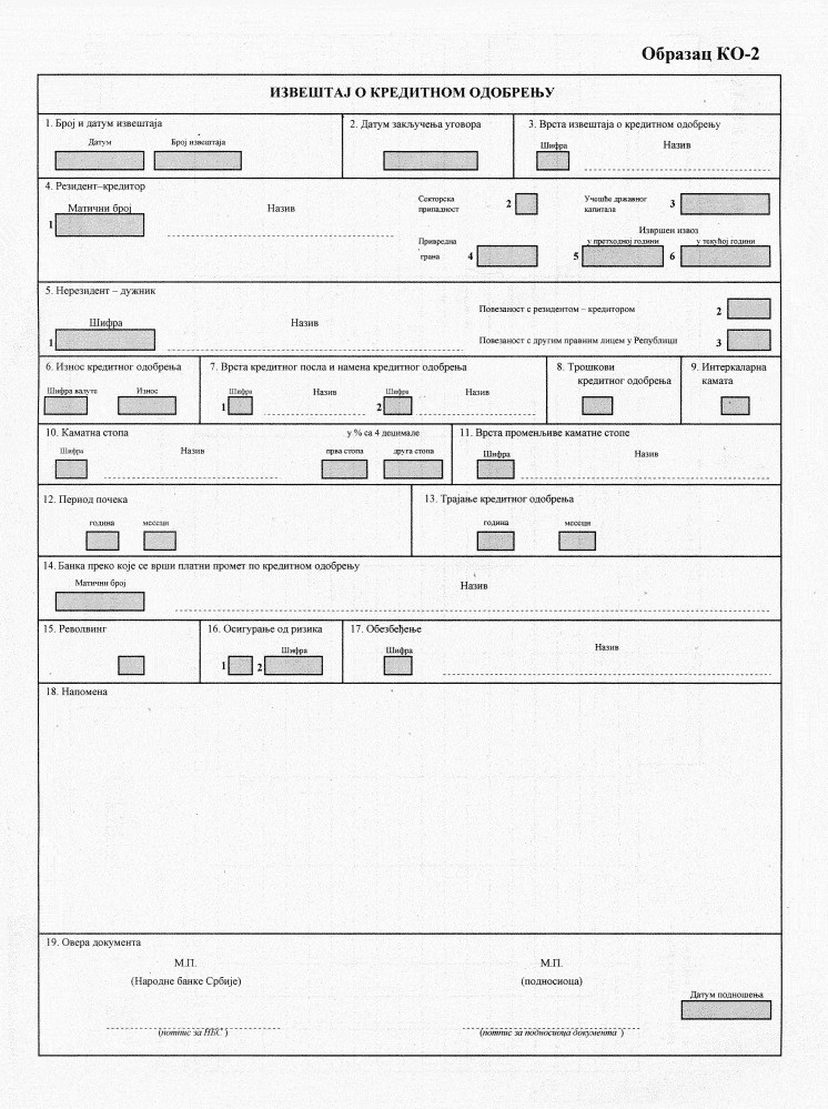 7. O kreditnom odobrenju u devizama i dinarima izveštava se pojedinačno, i to na sledećim obrascima: