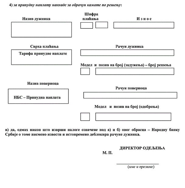 Format i namena poruka za razmenu podataka između Narodne banke Srbije - Prinudne naplate i banaka propisuju se uputstvom Narodne banke Srbije.