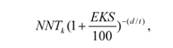 pri čemu je NNTk - neto novčani tok u određenom periodu k, a EKS - stopa koja u diskontnom faktoru označava efektivnu kamatnu stopu;