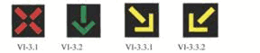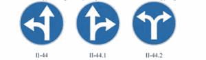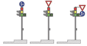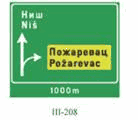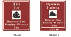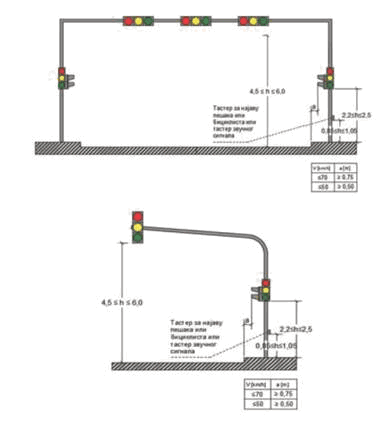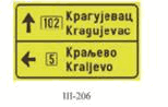 (2) dva znaka sa desne strane u nivou semafora, na posebnom nosaču i to znakovi: II-1, II-2, II-4, II-43, II-43.1, II-43.2, II-43.3, II-43.4, II-44, II-44.1, II-44.2, III-2, III-2.1, III-3, III-3.1 i III-62;