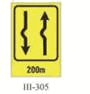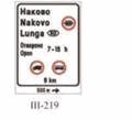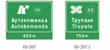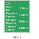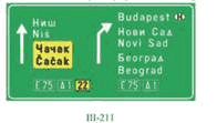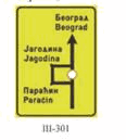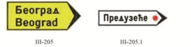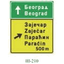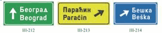 Na zajedničkom nosaču saobraćajnog znaka pored kolovoza dozvoljeno je postaviti tri saobraćajna znaka bez dopunskih tabli i to znakove: III-205, III-63 i III-64.