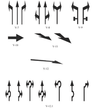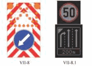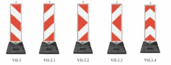 23) tabla za označavanje vrha ostrva je saobraćajni znak koji upozorava vozače da nailaze na ostrvo, ili je stub sa unutrašnjim osvetljenjem žute boje i postavlja se na vrh ostrva;