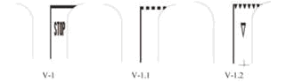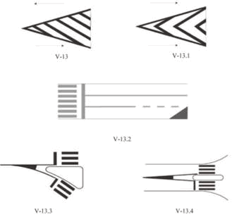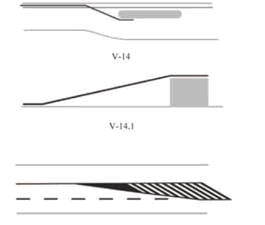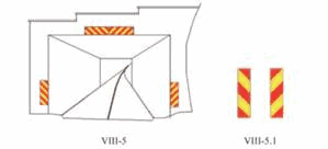8) indikator vrha površine razdvajanja tokova je oprema puta koja služi za označavanje mesta razdvajanja saobraćajnih tokova;