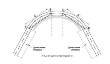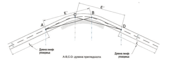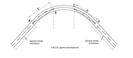 ŠEMATSKI PRIKAZ ODREĐIVANJA PRETICAJNE PREGLEDNOSTI KOD HORIZONTALNIH KRIVINA