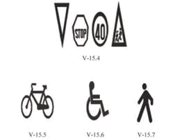 1) na visini od 0,8 m postavljaju se znakovi: I-35, III-59, III-82, III-82.1, III-83, III-95, III-96, III-97, III-98 i III-99;