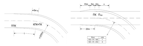 1) poluprečnik kružne (horizontalne) krivine;
