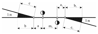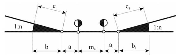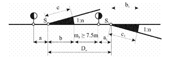 1) opasnog područja, zavisno od brzine vozova, i iznosi 2,5 - 3 m;