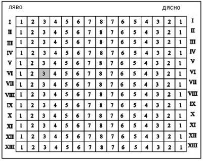 На чертежа е даден план на кино ОДЕОН. Марко е купил билет в шестия ред ляво и седалка 3. Оцветете седалката на Марко.