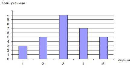 Използвайки данните за успеха на учениците от класната работа, представени в таблицата, завършете графиката по начина, по който е започната: