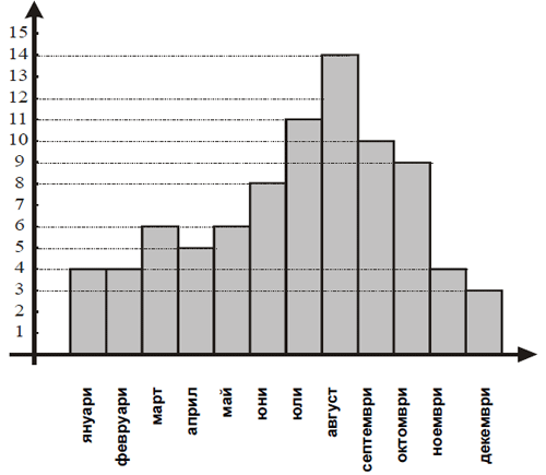 Числото на слънчевите дни в една година, по отделни месеци, е дадено с диаграма: |