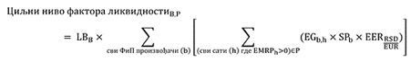 Ciljni nivo faktora likvidnosti za FiT plaćanja u Periodu naplate se izračunava korišćenjem sledeće formule: