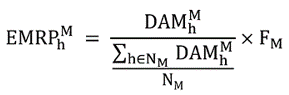 8) satna Očekivana tržišna referentna cena električne energije u Periodu naplate, u EUR po MWh (EMRPh) i prelaznom periodu I, izračunava se kao istorijska dan-unapred tržišna cena, kako je definisana u članu 2. ove uredbe, podeljena sa prosečnom dan-unapred tržišnom cenom na mesečnom nivou i pomnoženom sa "forward" cenom u datom mesecu ili, ukoliko mesečna "forward" cena nije dostupna, sa "forward" cenama dostupnim u drugim periodima u toku Perioda naplate ili Prelaznog perioda I, na sledeći način: